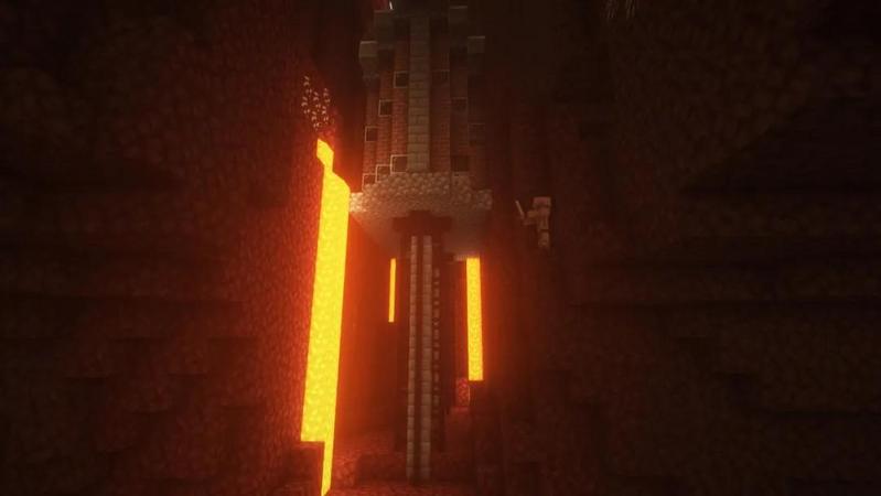 进入下界后,我们发现了一个峡谷,这个峡谷就很适合我们来建造地狱别墅。