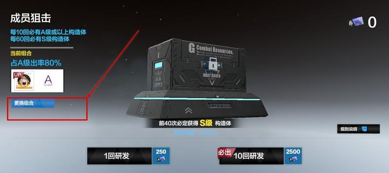 点击红框部位更换组合,可以选择所需A级构造体进行狙击。