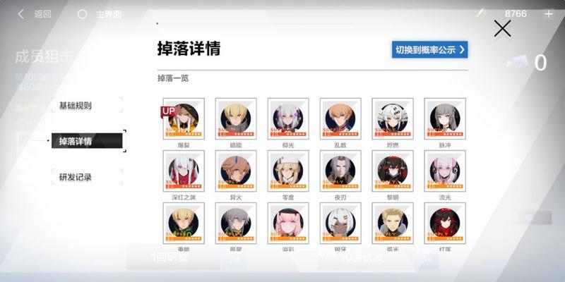基准卡池分为:成员狙击池,武器狙击池,武器研发池