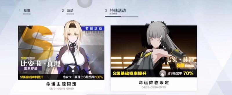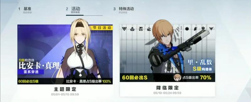 1.降临限定卡池每期将会有两个S级构造体一起出现,可选定其中一个提升到70%出货率。