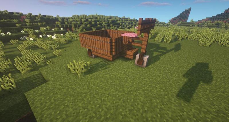 中间放上两格云杉木栅栏,两边放云杉木栅栏门,车把手就完成啦。
