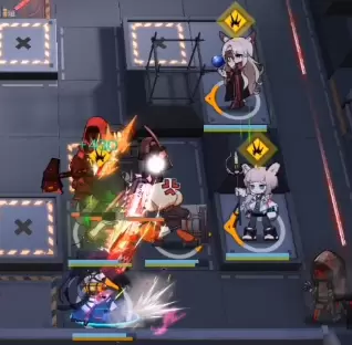 按上图所示顺序摆好1/2/3/4/5,煌二技能触发后可以发现输出基本无压力(煌练度不够可以在奶盾身后再放一个远卫协助输出,单奶下面也可以放近卫拿来切术士)
