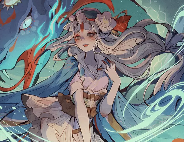 清姬敛起周身萦绕的杀气,青蛇盘成几圈,托着她缓缓落在地面。她向厉魔伸出了纤白的手,一步一顿地优雅上前。
