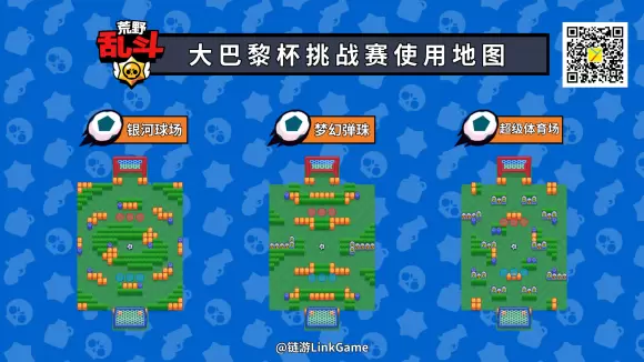 本次的大巴黎杯挑战将选用的3张地图分别是:银河球场、梦幻弹球和超级体育场。