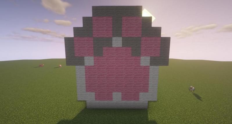将四个小爪垫的粉色羊毛换成粉色玻璃作为窗户。