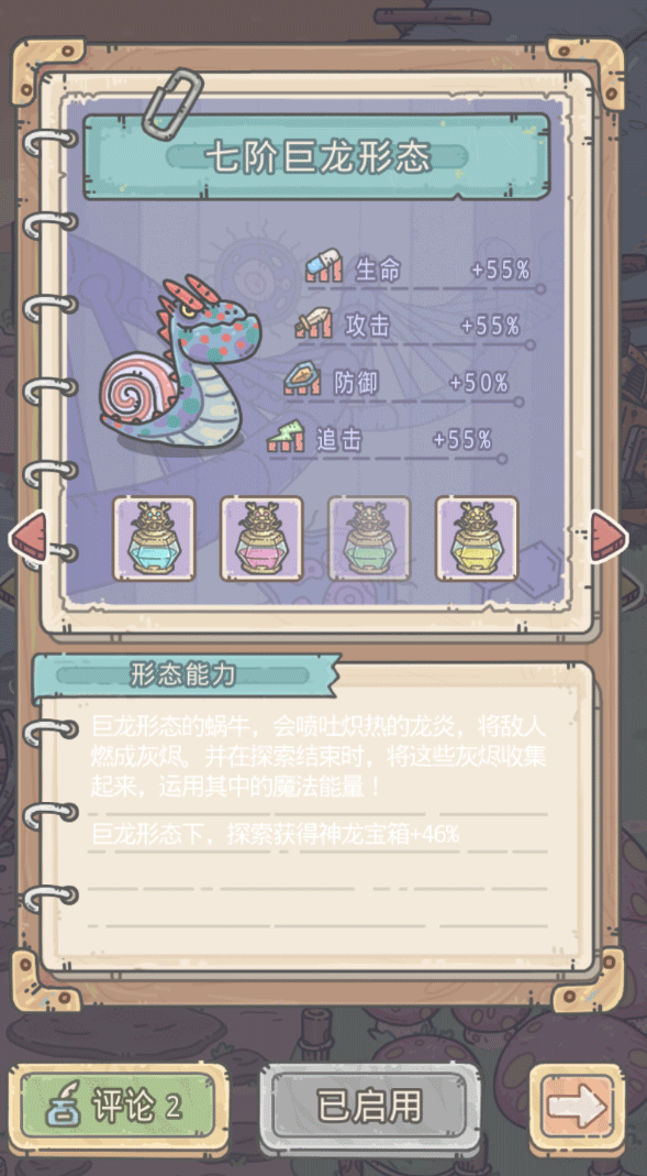 巨龙作为终极形态,四维碾压其余五种形态,使得巨龙成为各位蜗爷日常使用得最多的形态。