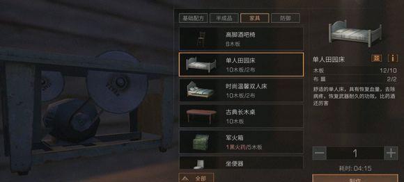 单人田园床,能恢复40点武器和防具的耐久。是残旧单人床的升级版稍微好了一点。