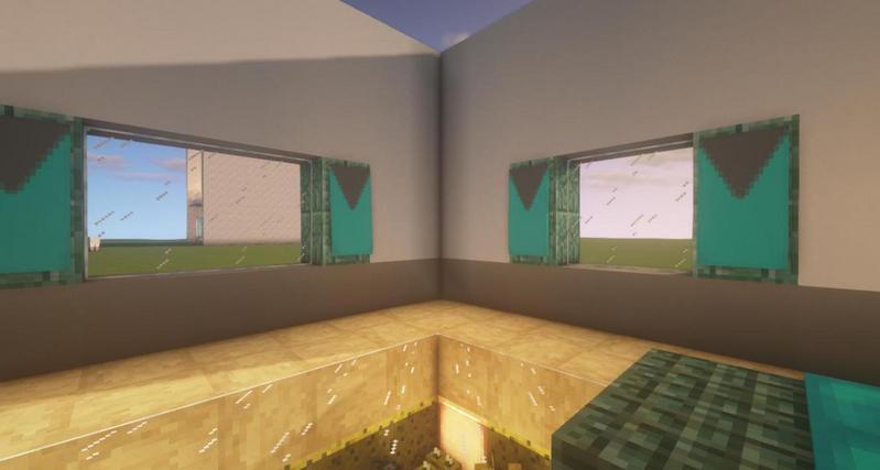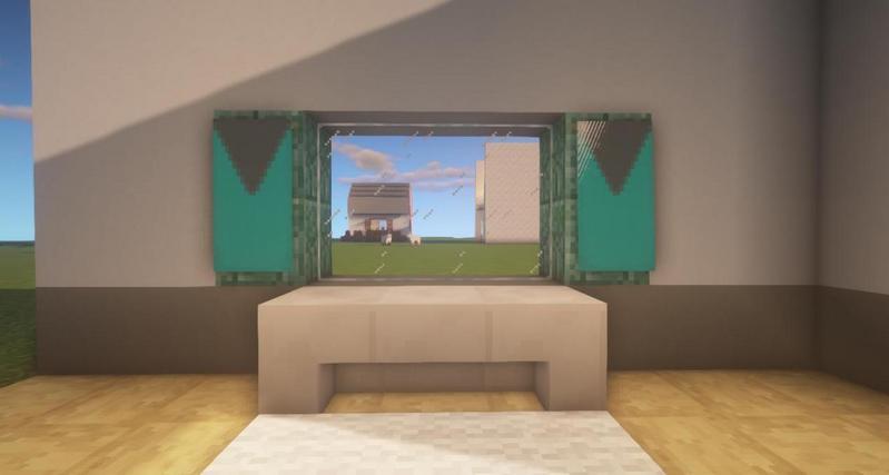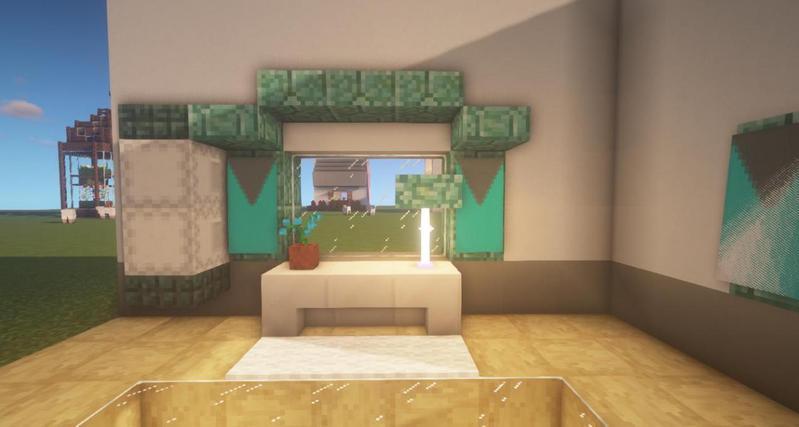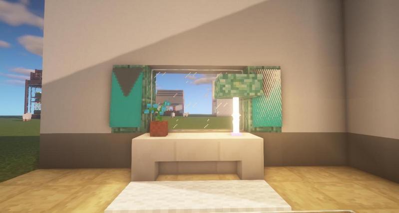 用末地烛和海晶灯做一个落地灯,另一边窗户也用海晶石台阶装饰一下。