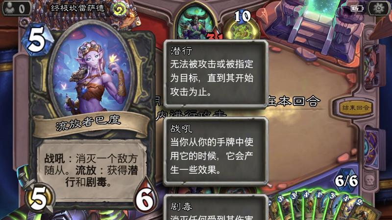 回合开始会洗入四个流放者,值得注意的是终极坎雷萨德有一张5费的无尽军团,抽三张牌,召唤抽到的随从。真的是非常恶心,抽到大哥就不好打了。