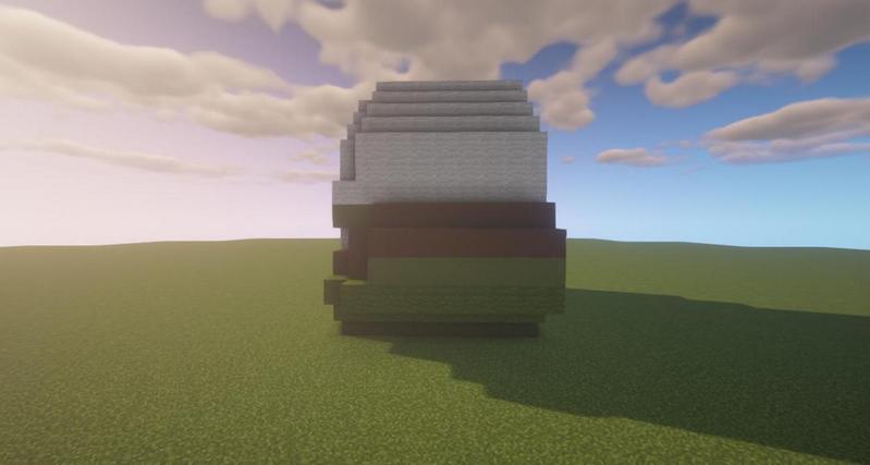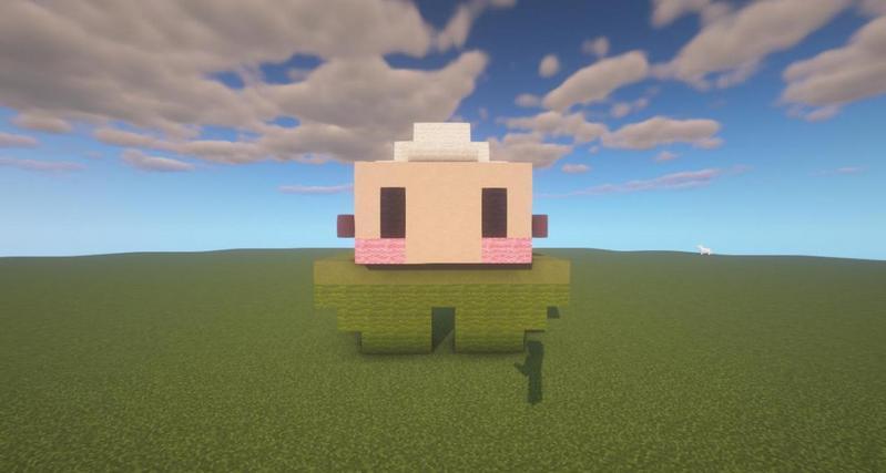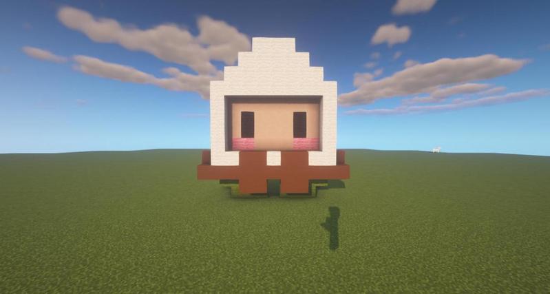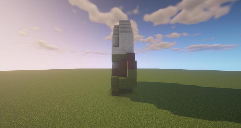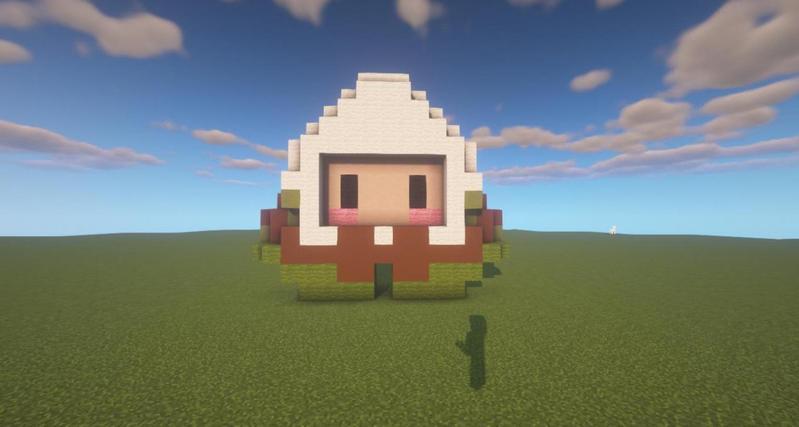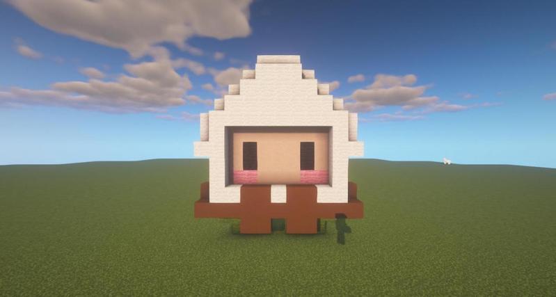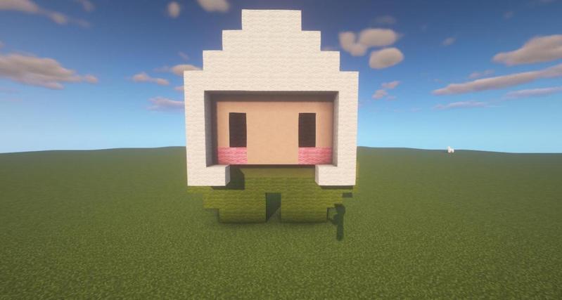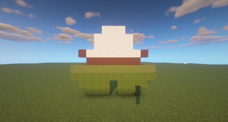 首先用绿色羊毛、黄绿色陶瓦、棕色混凝土和白色羊毛搭出如图形状。