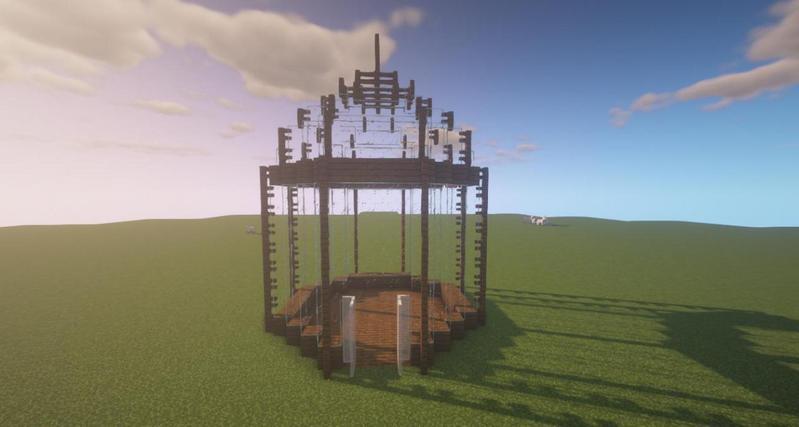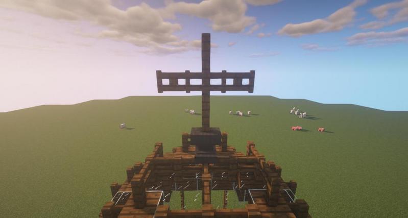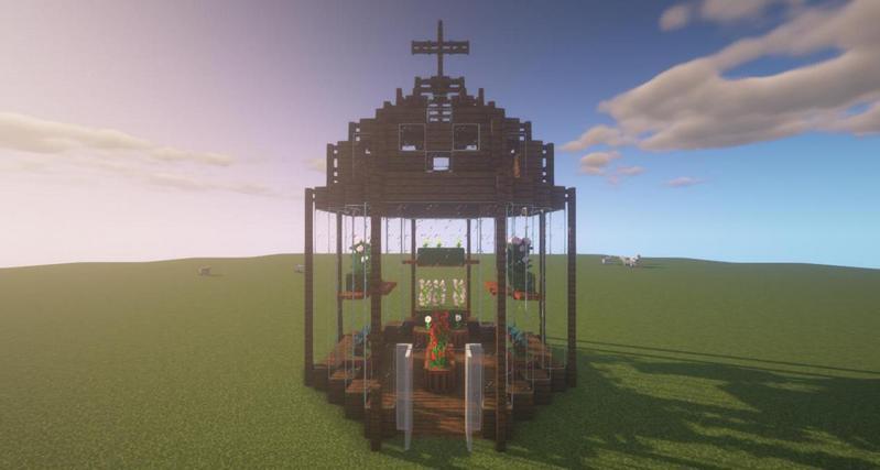 顶部可以用云杉木栅栏、云杉木栅栏门和铁砧做一个十字装饰。