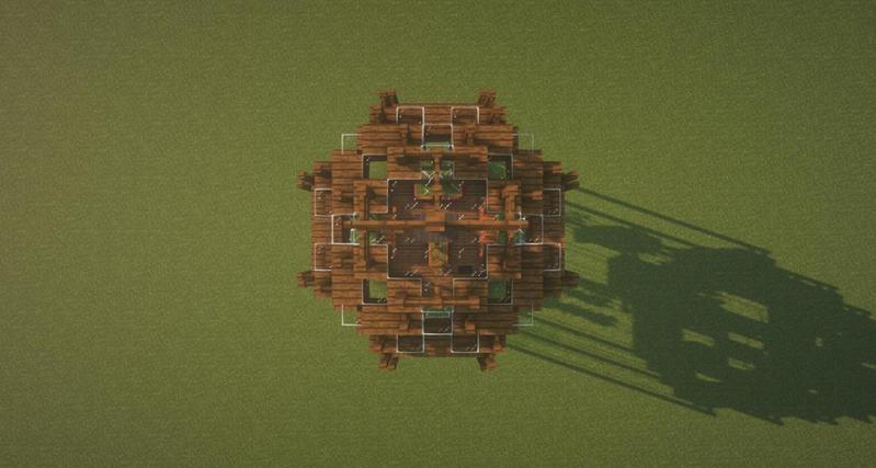将底部的草方块换成云杉木板,并且将最底层一圈的玻璃换成云杉木板。