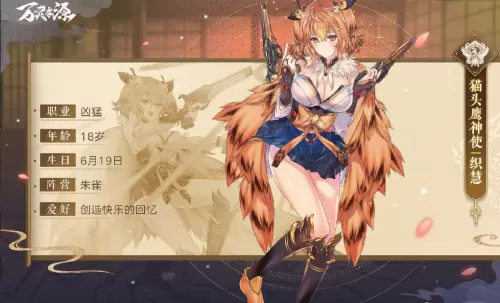 猫头鹰神使织慧拥有冷静的头脑和学者的气质,完成任务有条不紊,拥有惊人的洞察力,虽然在过去拥有过不好的记忆,但在和神子大人的相处过程中创造了很多美好的回忆。