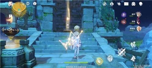 找到上图所示的位置中间,有个导光机关,启动该机关就会接受任务,任务要求就是将三个发光的宝箱找到,并且放到中间的柱子里。