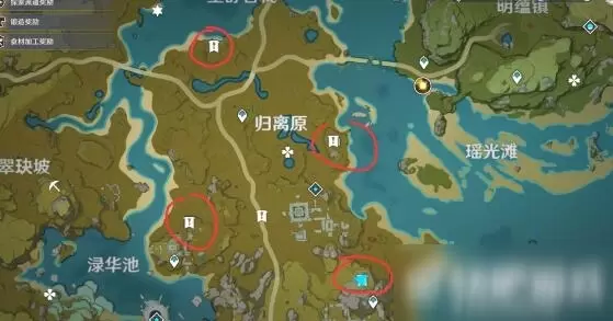 来来来给你们明示,路上小心丘丘人和盗宝团。