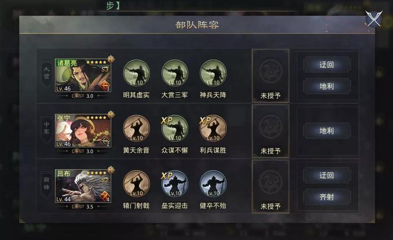 战法:XP众谋不懈+XP利兵谋胜;地利
