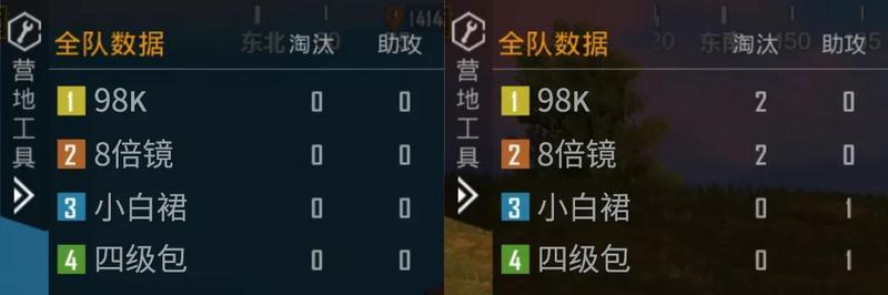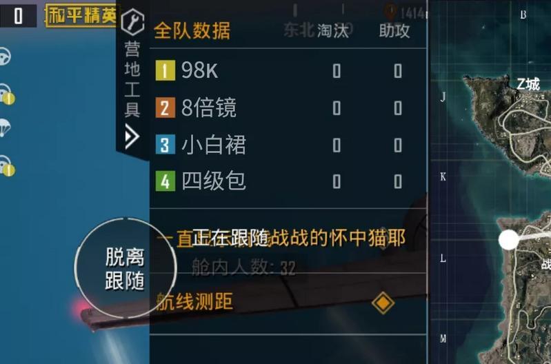 1、大家在开启和平营地的功能显示后进入游戏,便可以在地图左侧看见一个奇妙的功能:【全队数据】该面板显示包括自己在内全部队友的当局即时淘汰数与助攻数。谁刚枪猛,谁在摸鱼都一目了然!跟谁混有饭吃,相信大家这时都会心里有数。