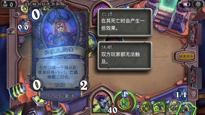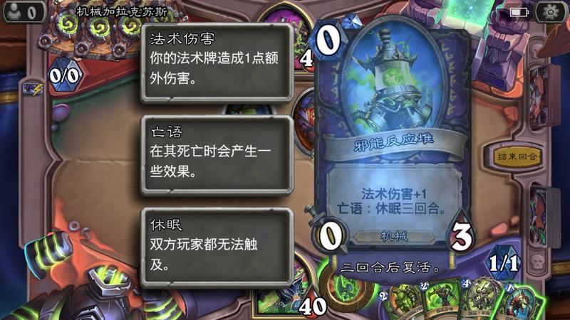 机械加拉克苏斯的英雄技能是在你的回合结束时,提升你的反应堆的能量。