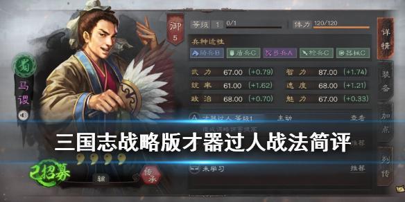 三国志战略版才气过人怎么样?才气过人即才器过人,是三国志战略版中由马谡传承获得的A级战法。那么这个战法的效果怎么样,又适合在什么阵容以及情况下使用呢?接下来就让我们一起了解一下吧。