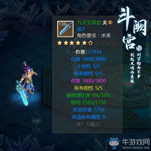 水系130级新武器“九天玄冥剑”通体冰蓝色,剑身似有冰焰燃烧,完美展示了130级水系的优雅与霸气。