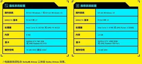 显卡最低:NVIDIA GTX 780 3GB或AMD Radeon RX 470。