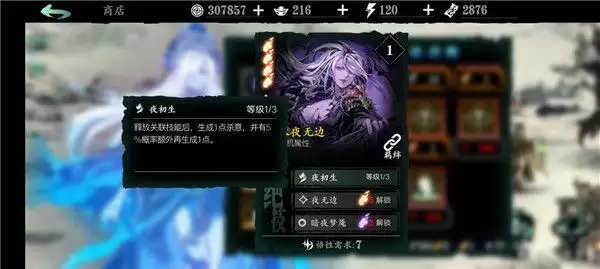 永夜无边:1绝技增加杀意,装备中散搭杀意流套装的话很实用,前中期杀意不足用这个也很好;2绝技让敌人在一定时间内无法使用任何技能,冷却时间也短,可频繁使用,非常强力,pvp和极致伤害流的pve胜负都在瞬秒间;3绝技可以用来在技能空档期闪避保一波命,辅助输出。