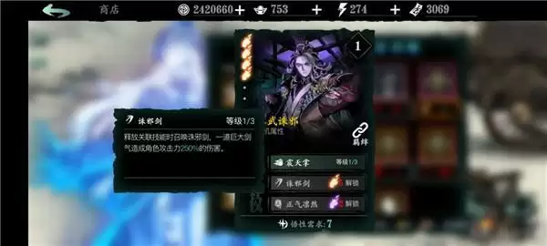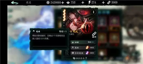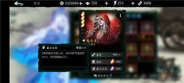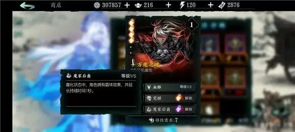 万魔之魂:1绝技增加角色基础面板的暴伤,非常强力;2绝技的增伤增防buff也非常可观;3绝技免控,前期用到后期的神技。