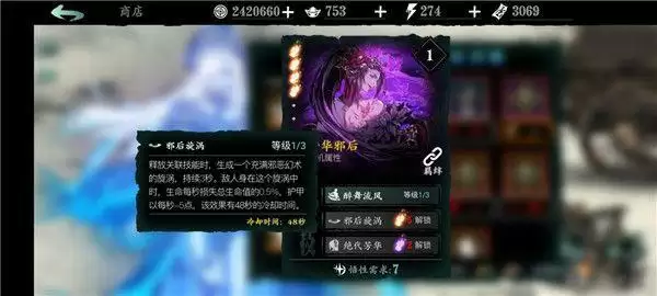 暗夜飘香:1绝技增加杀意,前期非常实用;2绝技为增伤增防buff,较为实用;3绝技回甲+免破甲;可与芳华邪后构成t1级别的暗芳羁绊。