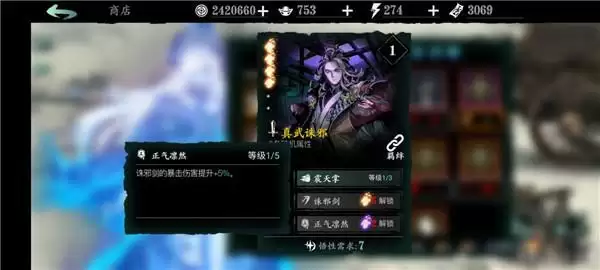 真武诛邪: 1绝技增加角色基础面板的暴击率;2绝技辅助输出;3绝技给2绝技增伤。可与堕落神医构成t4级别羁绊医剑羁绊。