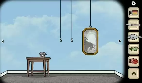 来到镜子这边,天上的飘来四片云彩。移动云彩到特定位置,云彩会变幻形状。移动四片云彩,让他们分别展现心脏、壁虎、虫子、咸鱼这四种形态,四片云彩会消失。出现另一片云彩。