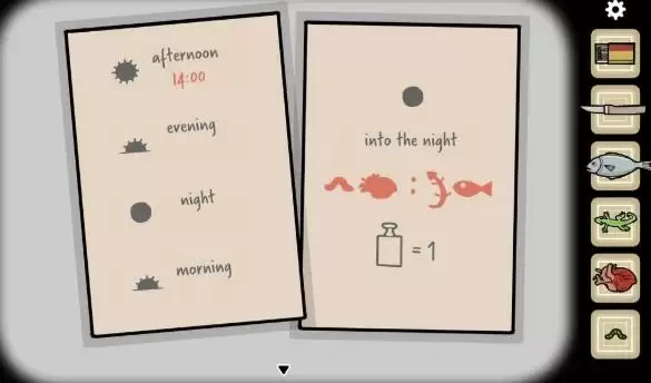 纸条上记录着时间,以及一个迷题。我们需要知道虫子、心脏、壁虎、鱼分别代表的数字。暂时得到的信息是砝码代表1。