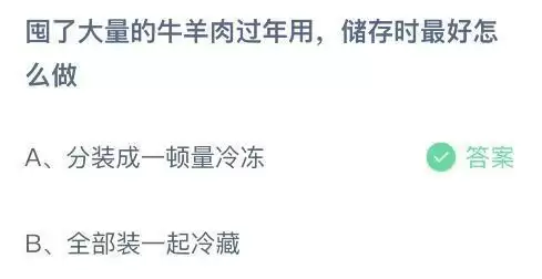 支付宝蚂蚁庄园小课堂2月6日每日一题答案是什么?支付宝蚂蚁庄园小课堂每天的凌晨更新一道题目,答对后能领取小鸡饲料,今天的问题是“囤了大量的牛羊肉过年用,储存时最好怎么做?”不知道答案的朋友不妨随三大妈小编一起来看看吧。