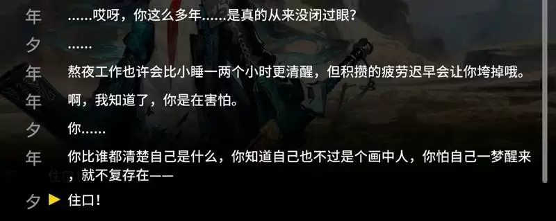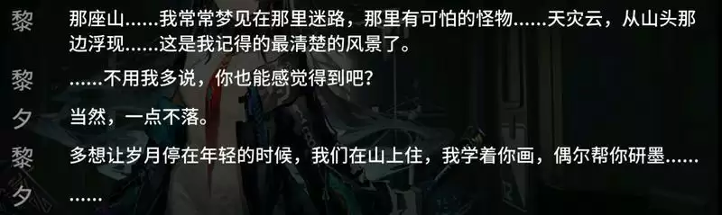 类似于《信条》,明日方舟新年活动《画中人》剧情中的感情线埋藏在玩家初见时难以体察的字里行间,直到最后才爆发出来。这样的故事结构比较容易给人一种“后劲很大”的深度体验,但它并不十分适合如今盛行的快消文化,就像是《信条》被人骂没有感情线一样,“画中人”中的感情线也需要看完整个故事之后再反复咀嚼才能在笔墨间体会到这种隐晦的深情。
