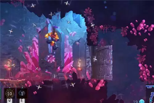 在重生细胞山洞中,我们所在的方块和按钮附近的方块都是可走方块,但是都只有一格高,你只有使用通关一周目时最后一个boss掉的一个符文,接着你的头飞出去并且可以在一定的范围内移动,然后找到墙里的隐藏方块(可走)中并顺着隐藏方块触碰按钮,最后再点一次符文 你的头就回来了。