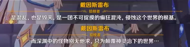 后来荧妹自言自语的台词:“在深渊淹没神座之前,我与天理和平无存,唯有战争……”同样是天理论的有力证据,并且表明了荧妹从属于深渊的立场。