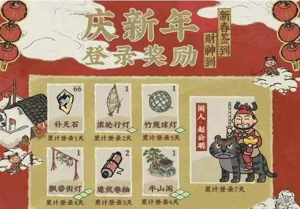 庆新年登录奖励,2月10日—2月18日,连续签到5天可获得建筑画轴*2。