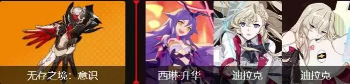 超弦空间(深渊):西琳·升华上+迪拉克中下(纯输出),折剑3件套(综合),主要打必杀技爆发。