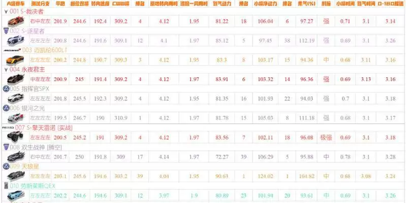QQ飞车手游2021a车排行榜一览