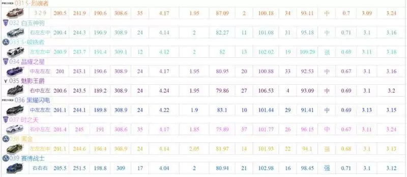 T3:烈魂者,白玉神驹,S-破晓者,晶耀之星,魅影王爵,黑耀闪电,时之夭,黑金,赛博战士。
