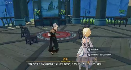 接取任务后,我们需要在轻策庄找到若心奶奶。一番交谈后,得知若心对于轻策庄海灯节依旧还是只有老少在庄,年轻人依旧在璃月繁忙无法脱身而感到无奈,同时也希望我们能去帮小白去打个下手。