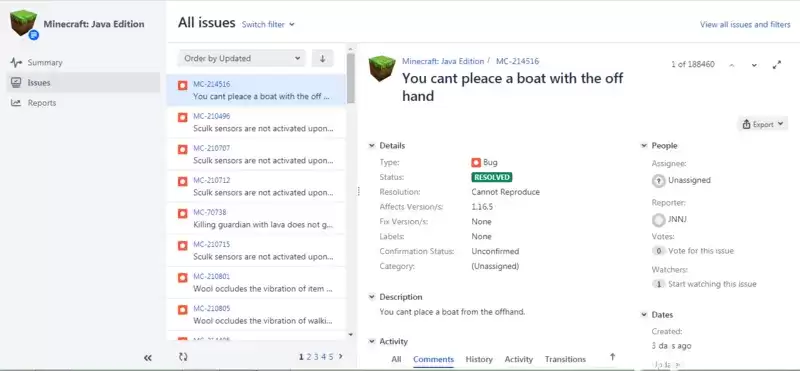 这个网站是MojangStudios官方建立的,用于让玩家反馈游戏bugs的网站。以后你要是在游戏里发现了什么“新特性”不妨来这里反馈一下!