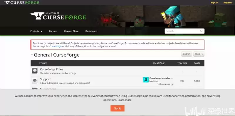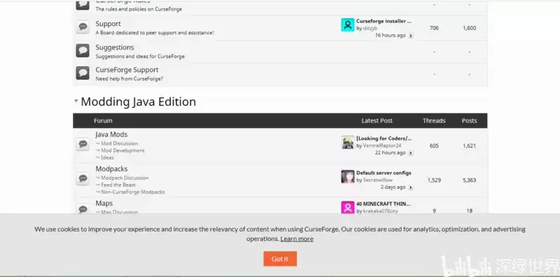 这个网站是CurseForge网站下的一个Minecraft论坛。因为CurseForge是一个各大游戏的资源网站,所以这里主要交流当然就是Minecraft的各种资源喽(包括游戏地图、mods、光影包、资源包和整合包等)。