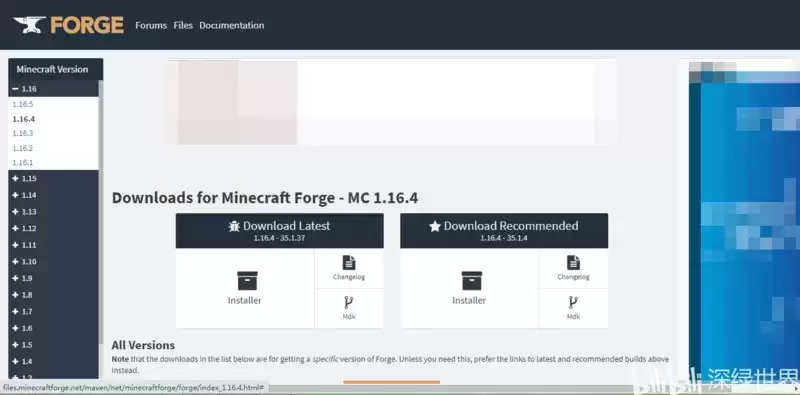 一些版块Forge官方下载源(网址:https://files.minecraftforge.net):