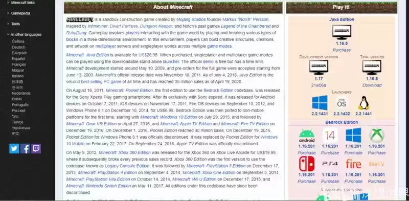 这是一个Minecraft玩家必须知道的网站!因为它是Minecraft的总官网。这里有官方发布的最新新闻,同时也是购买Minecraft Java版等Minecraft系列游戏的地方。