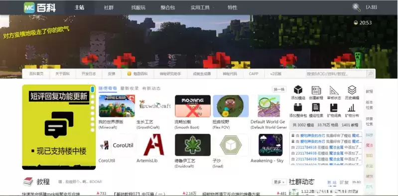 国内最著名的非官方Minecraft论坛!在这里你可以得到最及时的MC新闻中文转载,发现最有趣的mods、材质光影的转载,还可以与众多国内MC玩家和大佬级开发者聊天!但是请注意,论坛的版规比较严,各位不要乱说话哦!