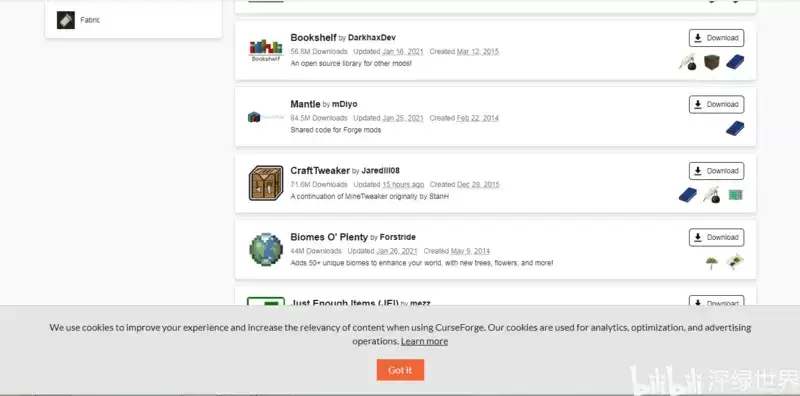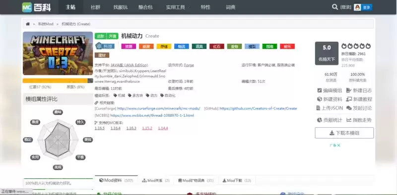 这是国内很著名的《我的世界》mods百科网站,在这里你可以查询一些你感兴趣的mods。但是,这个网站不提供资源下载,但提供下载链接(通常是官方链接)。