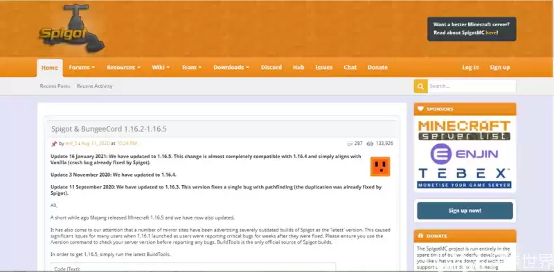 这是一个Minecraft服务器插件资源站,很多服主用过的插件最初很有可能就是在这里发布的。同时它也为插件作者和用户们开设了一个论坛。