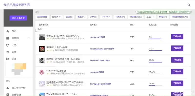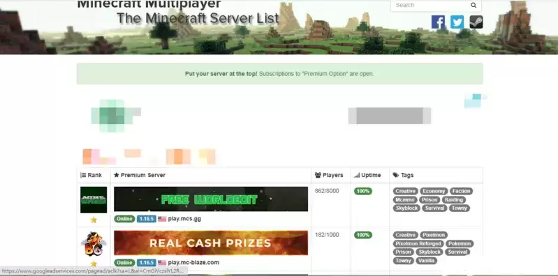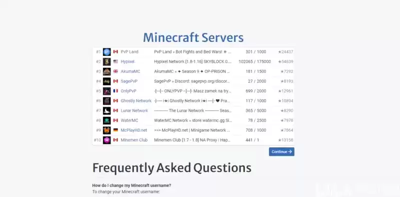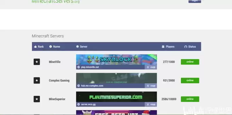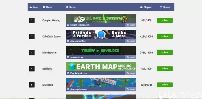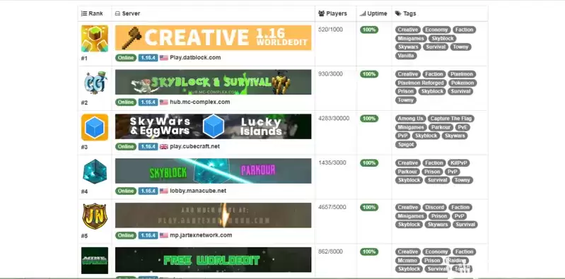 官方并不开设这种网站,他们都是玩家自发设立的。这类网站收集了大量服务器资源。你在这里可以找到一些有趣的服务器,比如Hypixel、Mineplex、CubeCraft、EarhMC等。