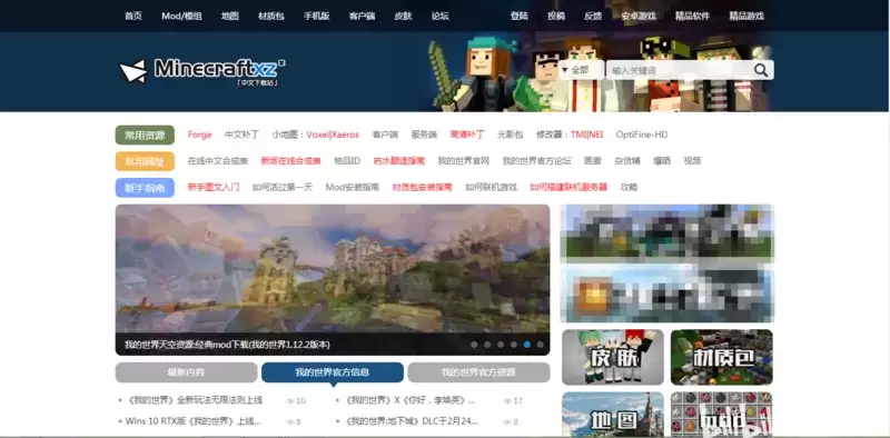 这也是一个Minecraft资源网站,包括地图、资源包、mods等。同时它也开设了一个Minecraft论坛。