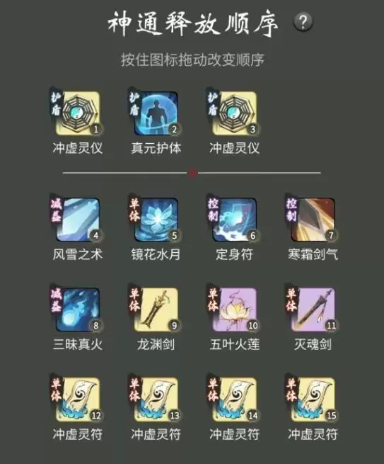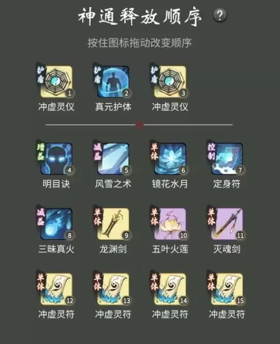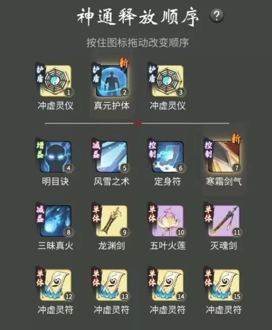 法修人界神通顺序如图,思路就是群攻技能清理宠物定身控住打一套。